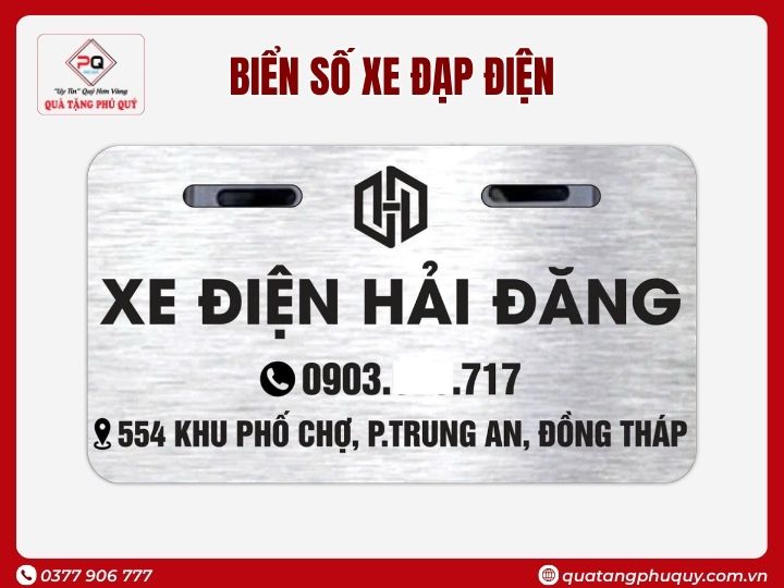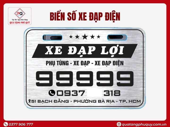 In biển số xe đạp điện alu nhôm theo yêu cầu không chỉ giúp cửa hàng tạo hình ảnh chuyên nghiệp mà còn là công cụ quảng bá thương hiệu hiệu quả, giúp thương hiệu của bạn xuất hiện mỗi ngày trên đường phố. Nếu bạn đang tìm địa chỉ in biển số xe đạp điện uy tín, liên hệ ngay Quà Tặng Phú Quý để được tư vấn và hỗ trợ.