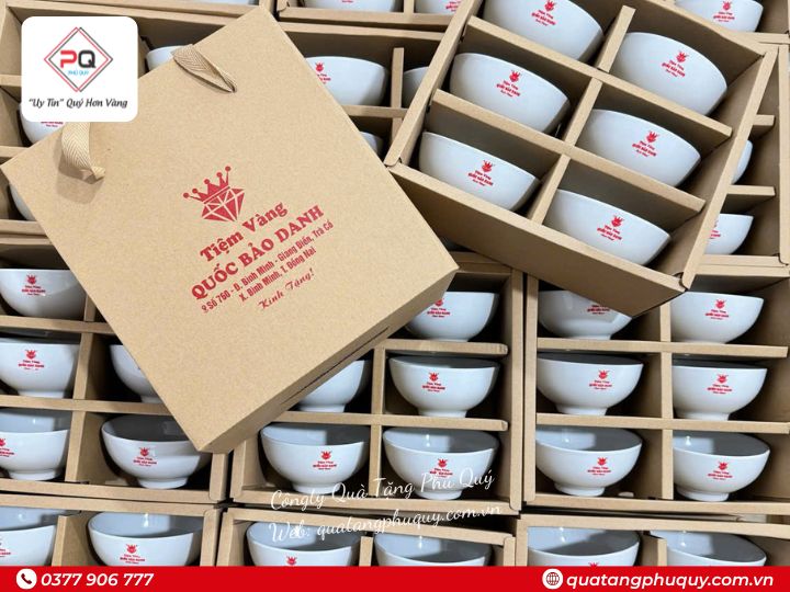 Quà Tặng Phú Quý - Xưởng sản xuất chén sứ in logo uy tín, chuyên nghiệp