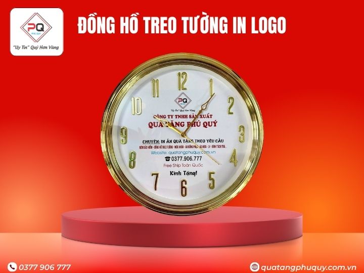 In logo đồng hồ treo tường là một trong những giải pháp quà tặng được nhiều doanh nghiệp ưu tiên bởi tính thiết thực, giá trị sử dụng lâu dài và khả năng quảng bá thương hiệu hiệu quả. Mẫu đồng hồ treo tường in logo tròn vân si vàng 12 số nổi 35cm tại Quà Tặng Phú Quý được thiết kế tinh tế, sang trọng, phù hợp làm quà tặng cho khách hàng, đối tác, nhân viên hoặc sử dụng trong các sự kiện quan trọng của doanh nghiệp.