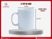 - Chất liệu: Làm từ sứ trắng cao cấp, bề mặt men mịn, sáng bóng, giúp hình ảnh logo in lên rõ nét và tăng tính thẩm mỹ cho sản phẩm.